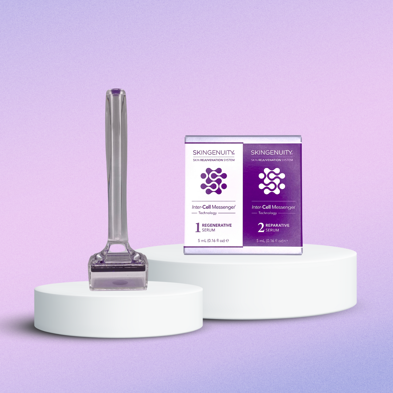 The Skingenuity Travel Kit comes with everything you need to maintain your skin's health and vitality and combat anti-aging on the go, or from the comfort of your own home!